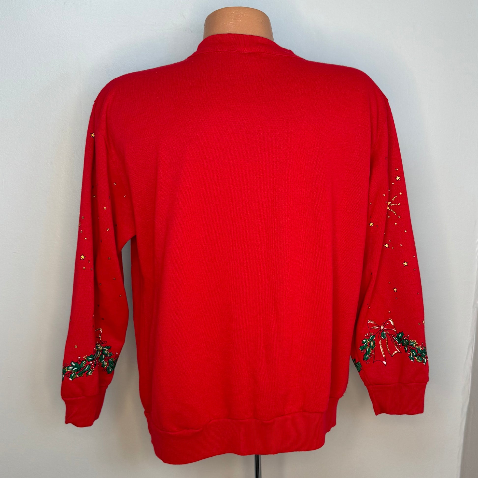 1990s Christmas Sweatshirt, Holiday Time Size M/L, Wishes Can Come True, Teddy Bear