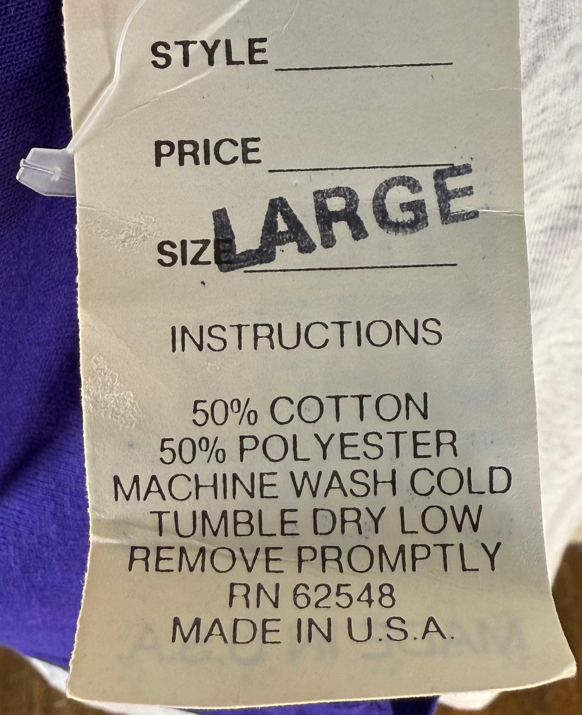 Condition - I beleive it's new with the tags no longer attached. They were attached to it with a safety pin. The screen print is kind of splotchy looking on the LSU part.