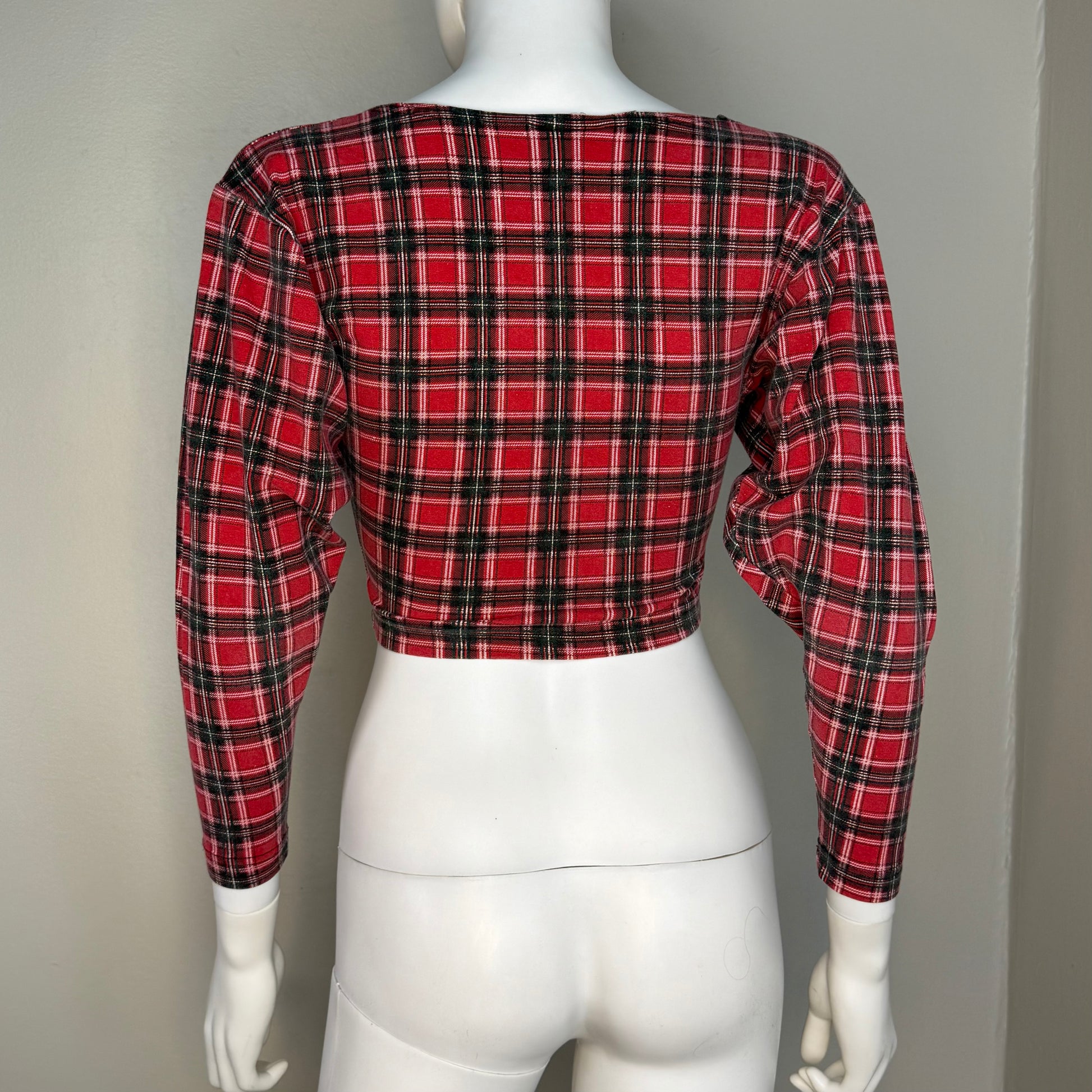 1990s Plaid Crop Top Tee, Rave Size XS/S