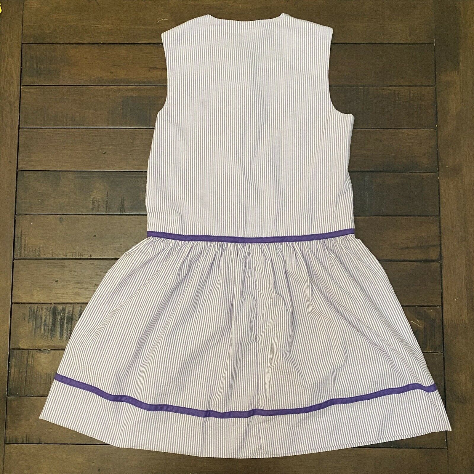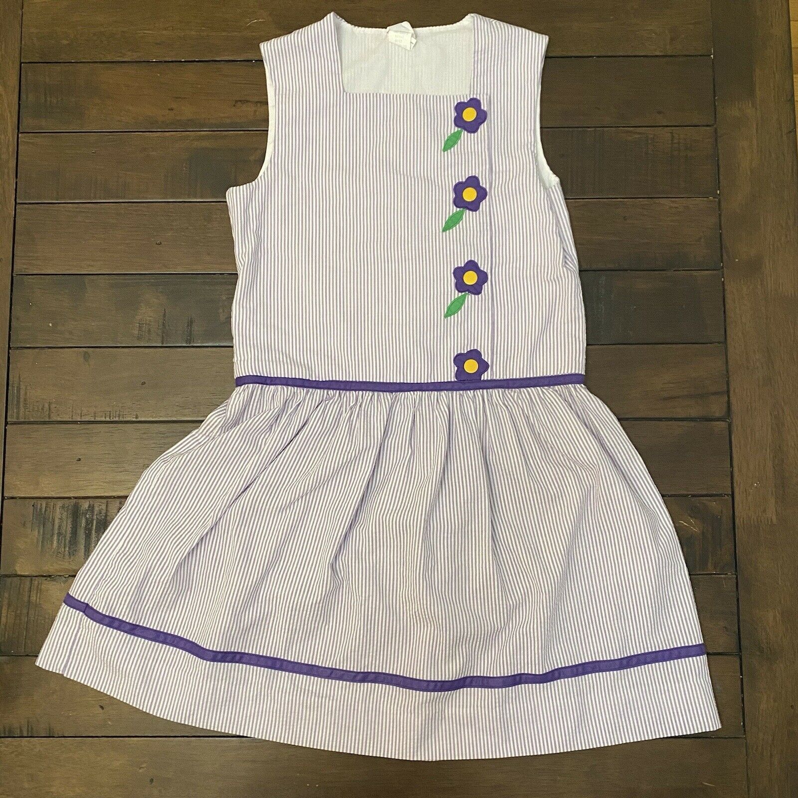 1970/80s Youngland Purple Seersucker Dress, Girls Size 12, Flower Appliqué