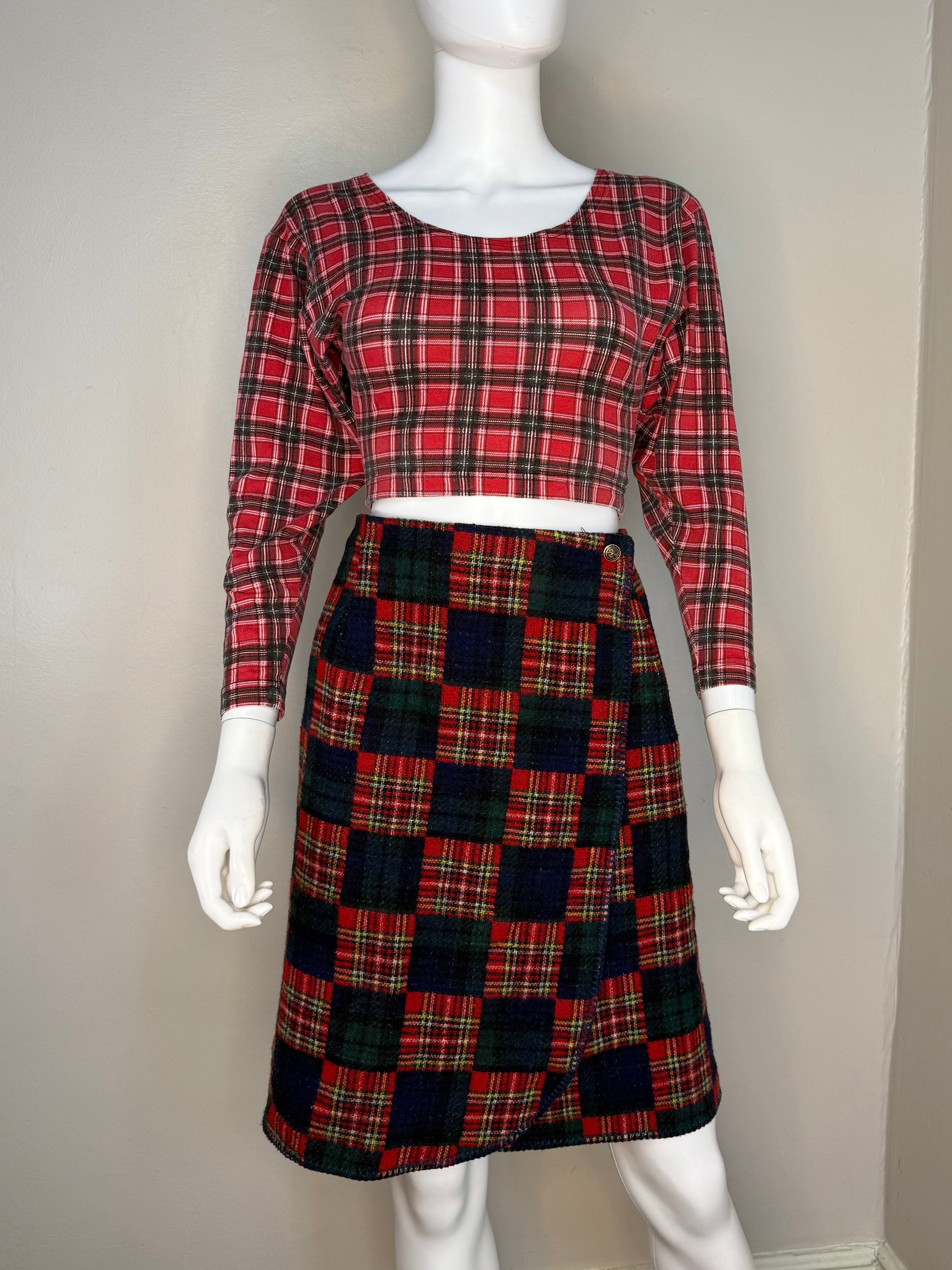 Vintage 1990s Plaid Wrap Skirt, Eleanor Colton Size Medium, Wool Blend